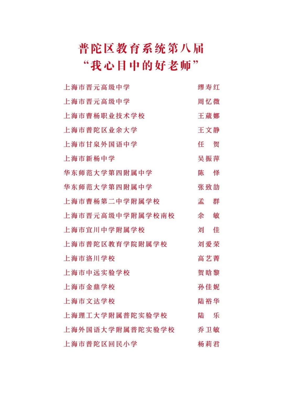 祝贺以上所有受表彰的老师