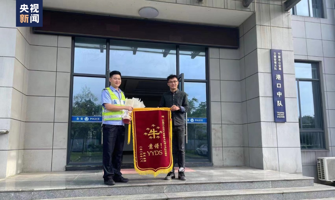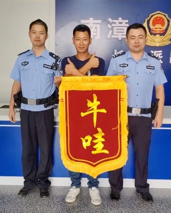 民警打开锦旗瞬间“放飞表情”