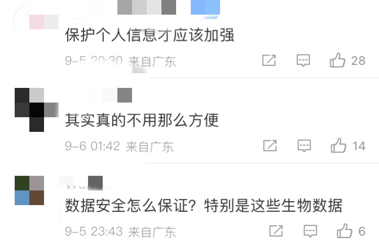 但更多的质疑则集中在信息安全是否有保障,隐私问题、老人家被骗、盗刷问题又该如何解决这些方面。