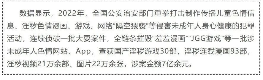 今年6月,中央网信办发布《关于开展“清朗·2023年暑期未成年人网络环境整治”专项行动的通知》,将隔空猥亵问题纳入整治重点,重拳打击涉未成年人违法违规行为,旨在进一步强化未成年人网络保护,营造健康安全网络环境。