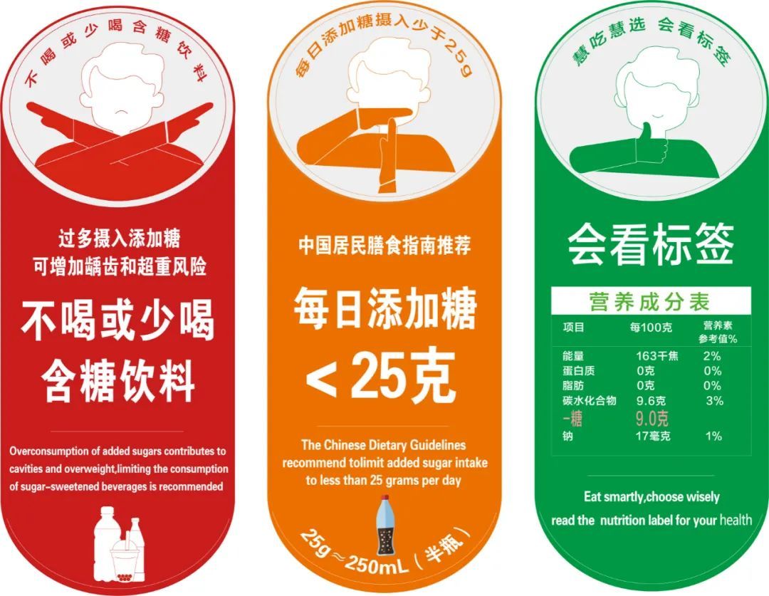 上海试点实施含糖饮料健康提示系列标识,红色建议“不喝或少喝含糖饮料”,橙色提醒“每日添加糖摄入少于25克”,绿色指导市民“看懂营养成分表”。