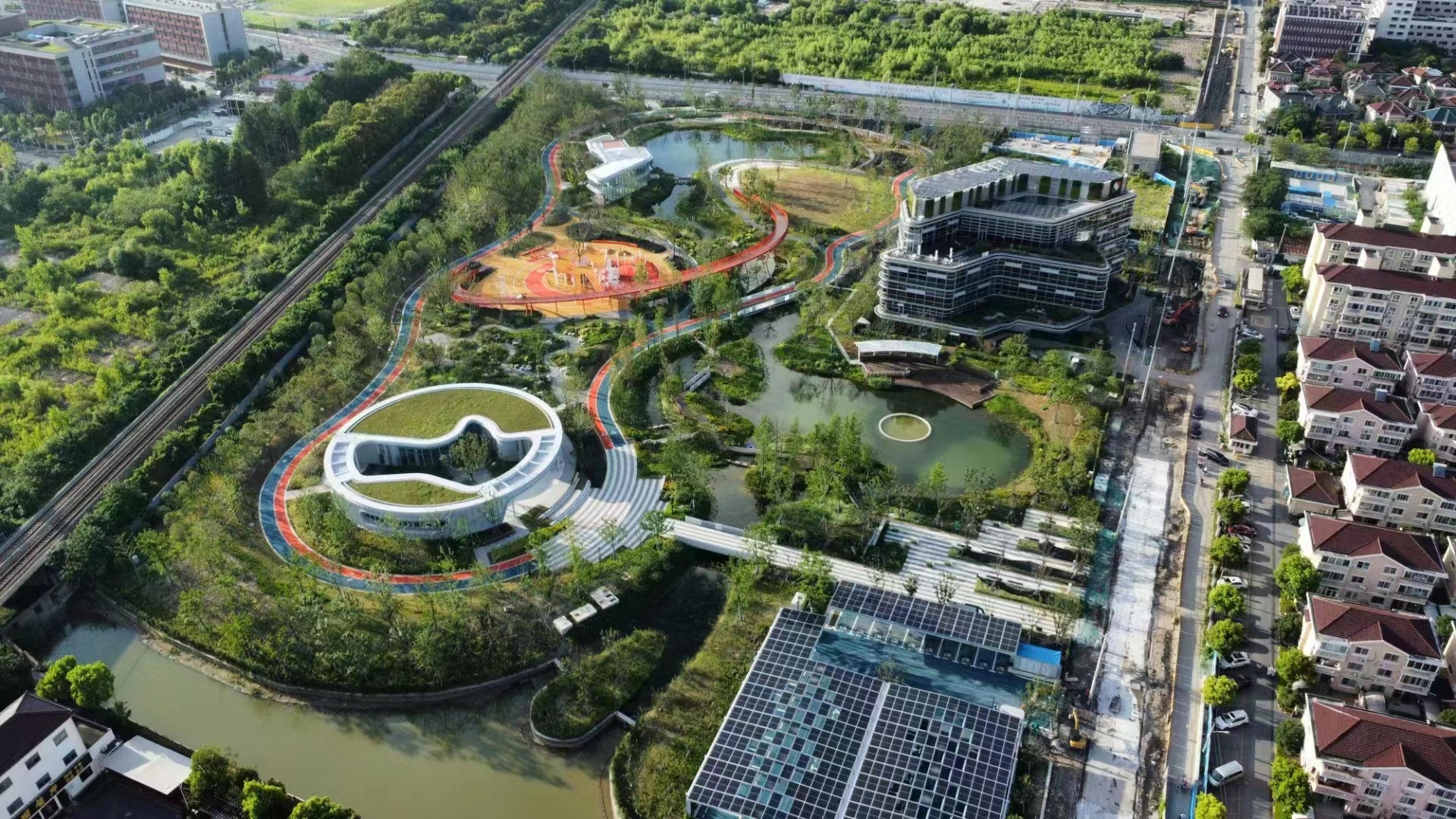 根植绿色基底,构筑生态绿壳,在桃浦智创城内,绿色的“基因”也有着足够的科创智慧——实现了动态优化、融合联通。