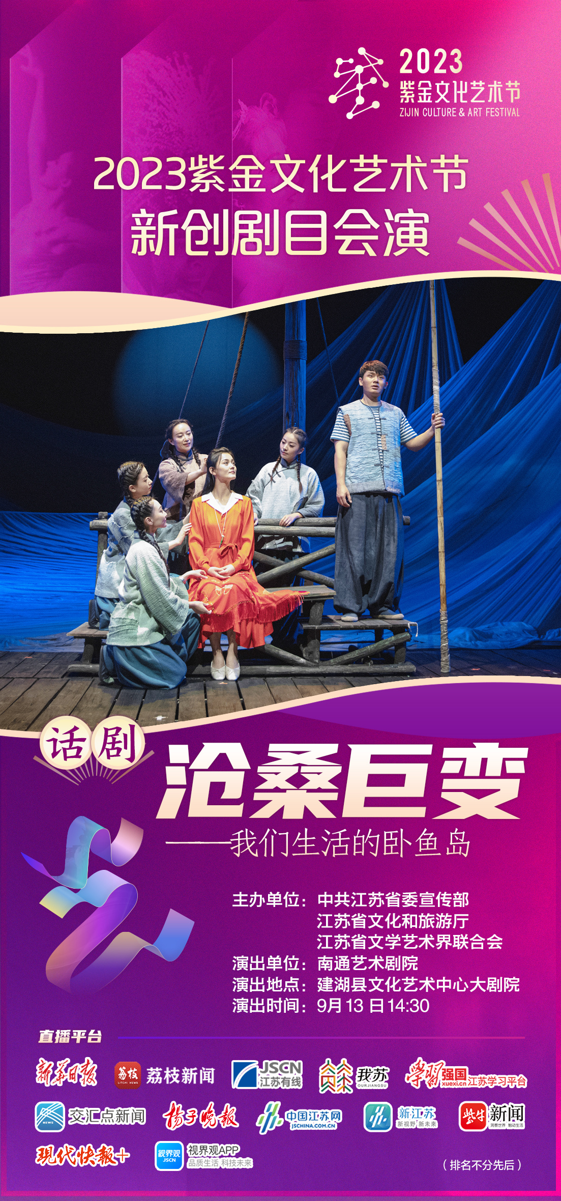 作为2023紫金文化艺术节新创会演剧目,由南通艺术剧院打造的原创话剧《沧桑巨变——我们的卧鱼岛》将于9月13日14:30,在建湖县文化艺术中心大剧院上演。以一部诗意的现实主义作品聚焦长江大保护,生动且深刻地展现人类与长江的共生关系。