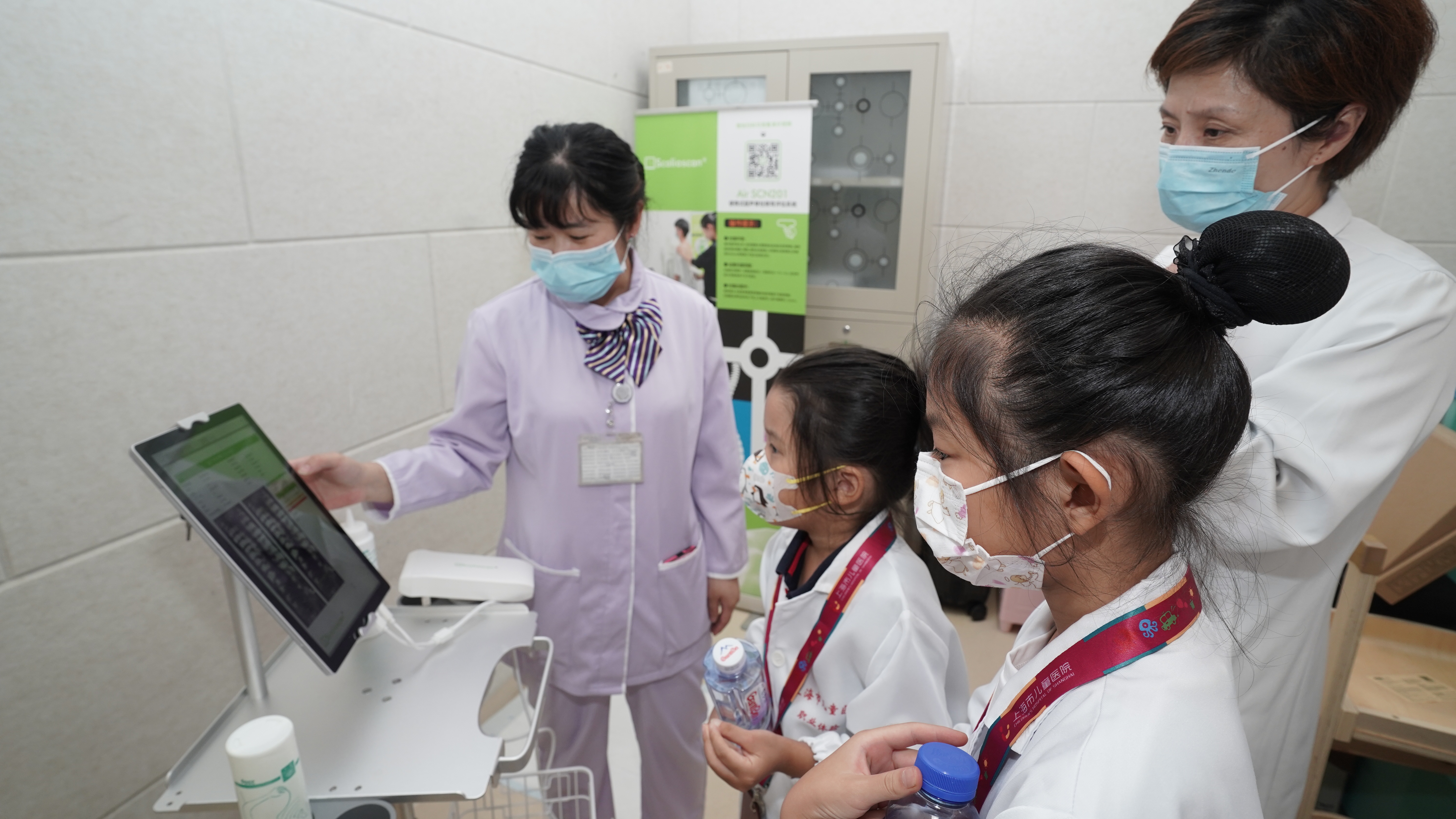 “开放日”活动中,该院医师团队带领孩子们参观了儿保科的门诊和治疗室,并进行体格测量与评价、骨龄检查和脊柱侧弯筛查等,让孩子们对自己的体格健康有了更加深入地认识。