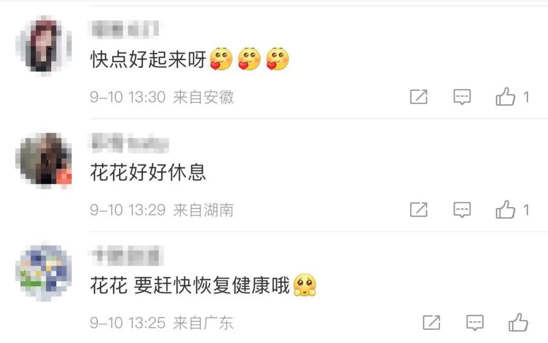 对于生病了的花花,网友们纷纷送上祝福,希望它好好休息,赶紧恢复健康。