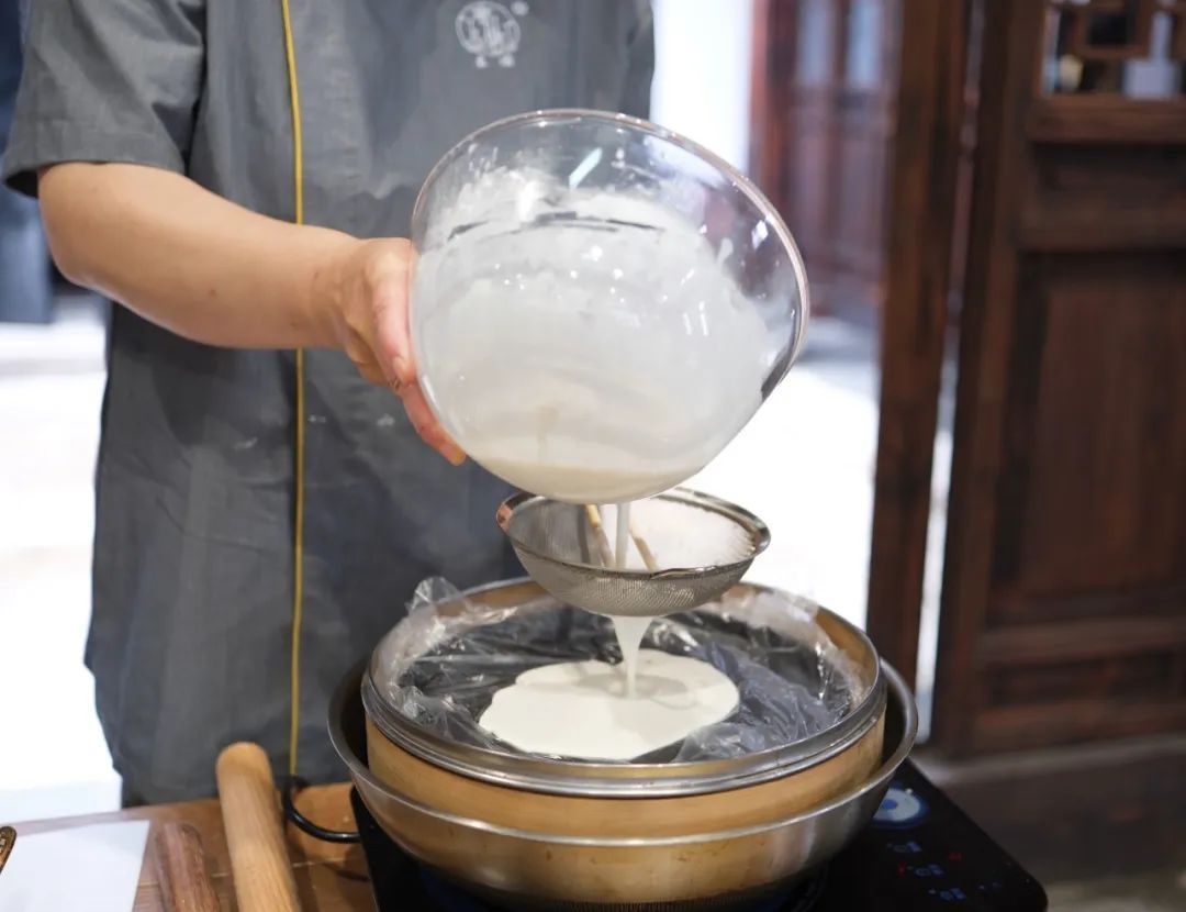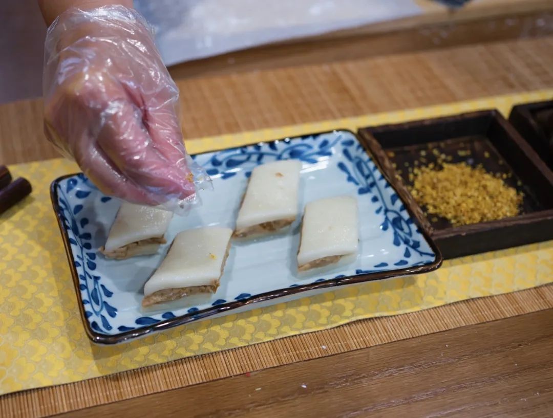 将混合后的糯米粉和玉米淀粉过筛,入蒸锅蒸至凝结。