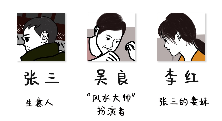 李红虚构了两个“人设”——地产大亨“张总”和著名“风水大师”“丁大师”。“张总”资产上亿,同时也是“丁大师”的忠实客户;“丁大师”精通“钱生钱之术”,可为张三转运并带其投资赚取收益。