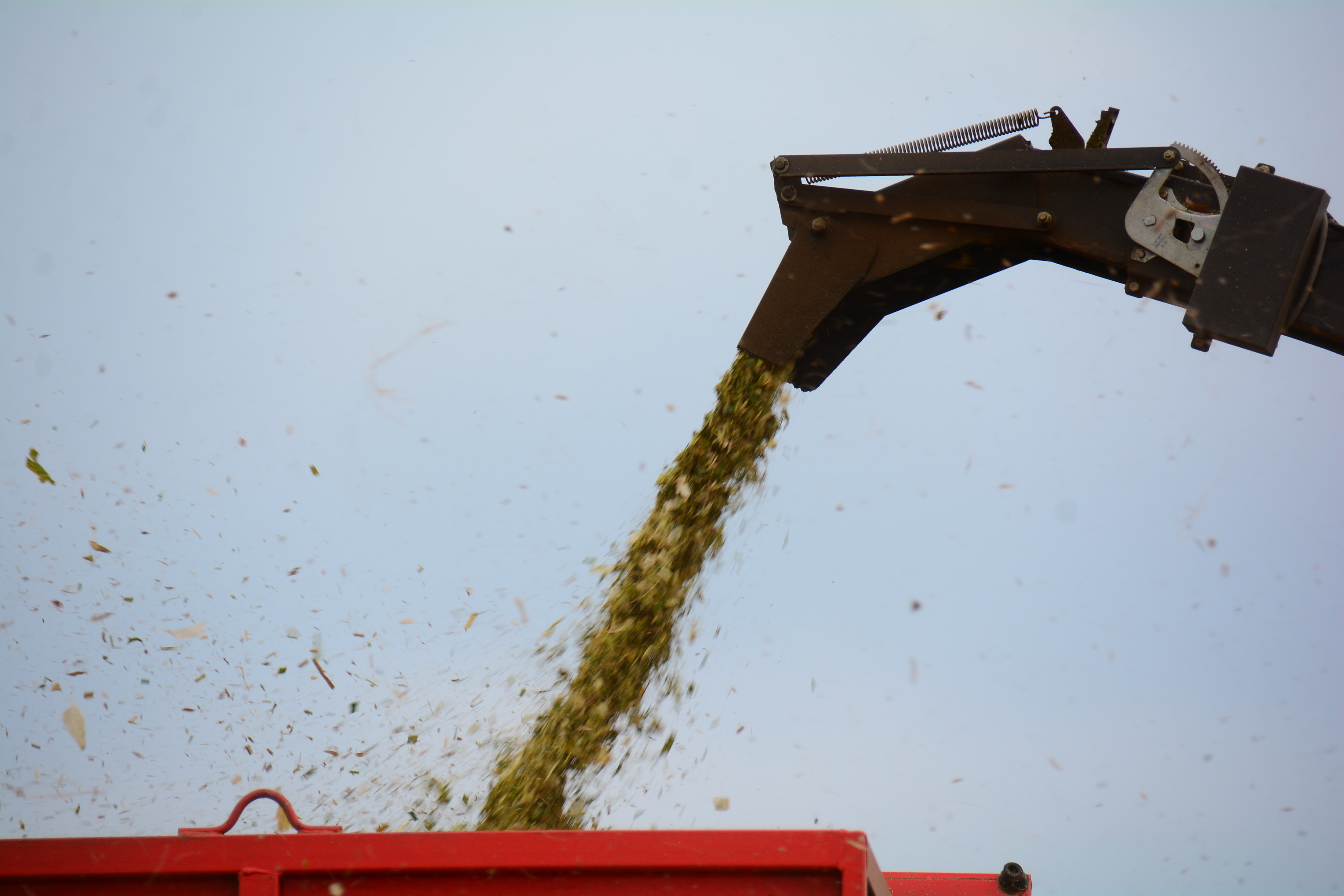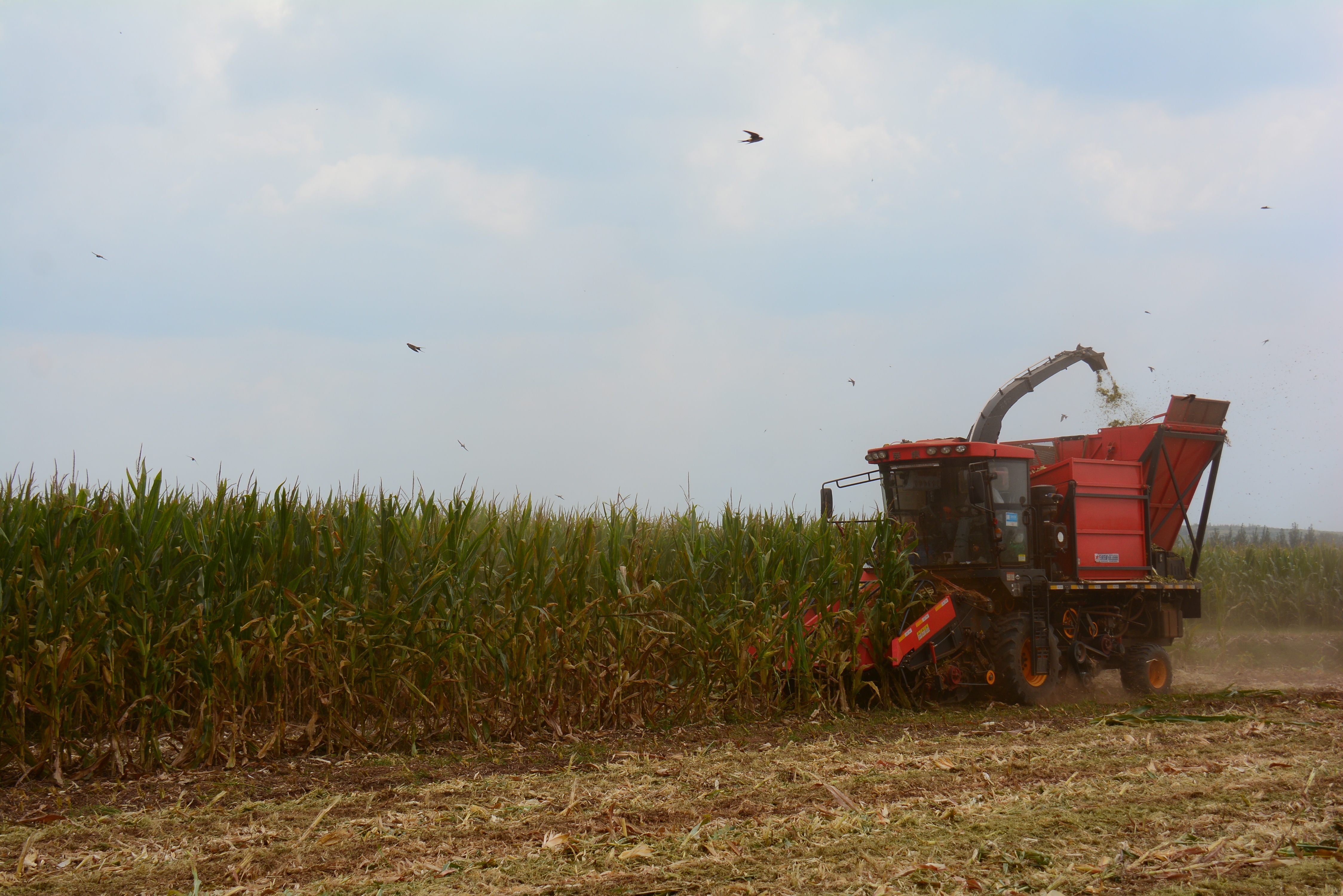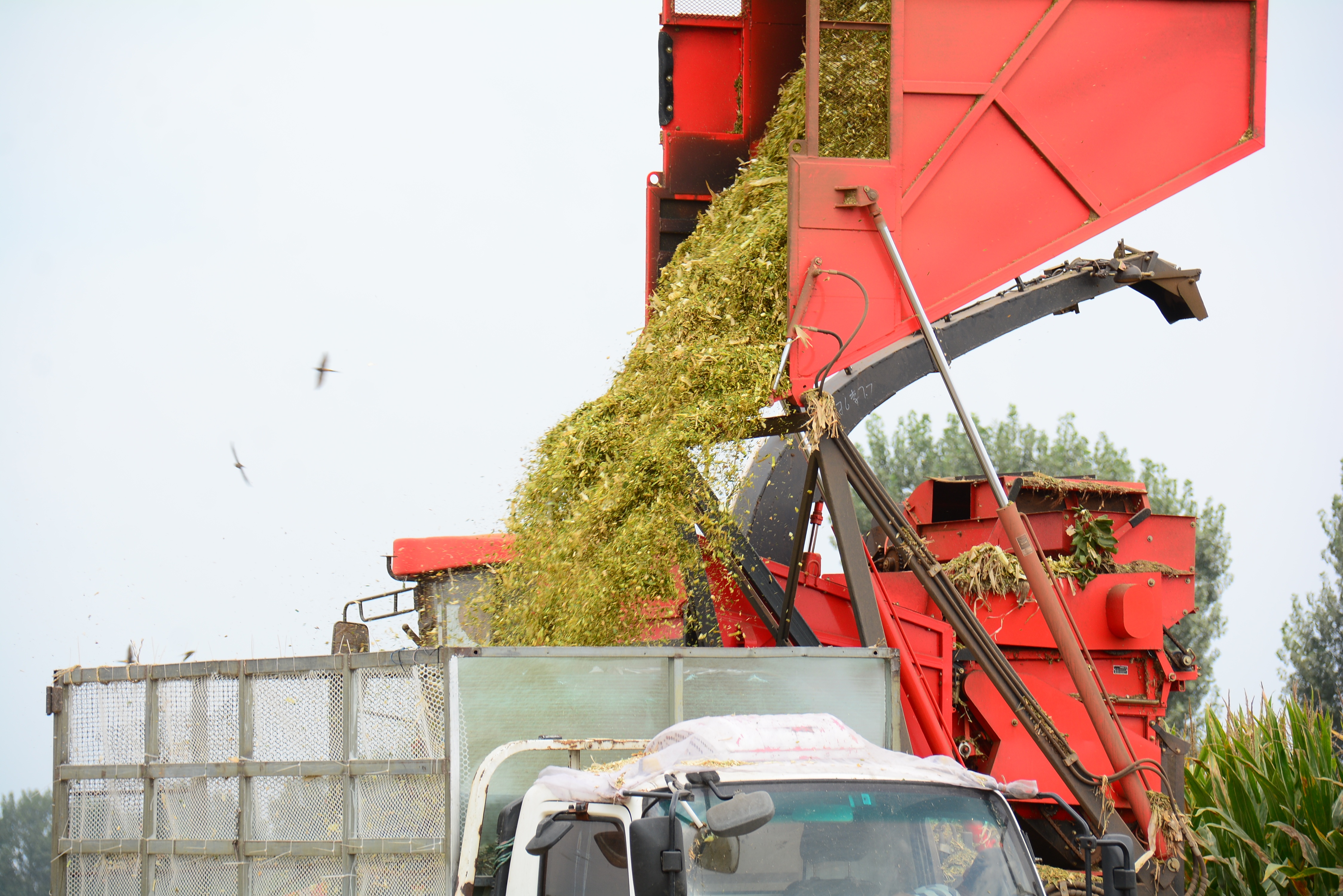秸秆粉碎机飞快地将秸秆吞进“肚里”,经过 “消化”,成熟变黄的秸秆变成碎屑,运输车直接送入“贮藏室”,将粉碎的秸秆进行黄贮发酵。