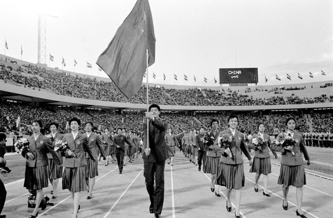 1974年9月16日,中国运动员在伊朗德黑兰举行的第七届亚运会闭幕式上。新华社记者 王景英 摄