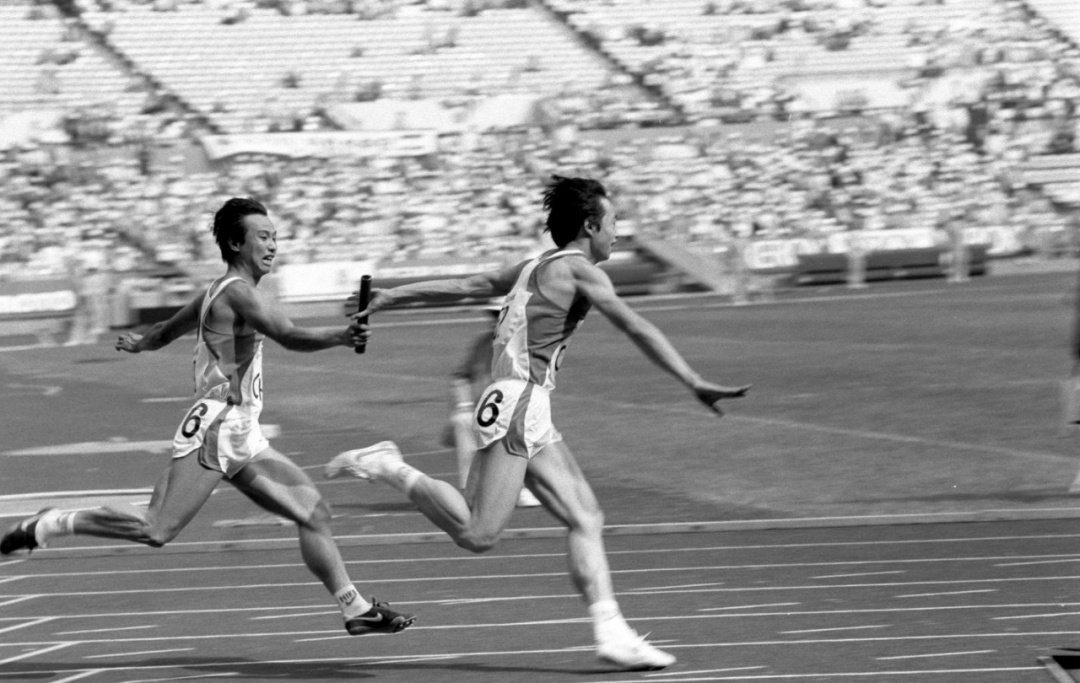 1986年10月5日,在汉城举行的第十届亚运会的最后一天,由蔡建明、李丰、余壮辉、郑晨组成的中国队在田径男子4×100米接力比赛中,以39秒17的成绩获得冠军,并刷新了亚洲纪录。新华社发
