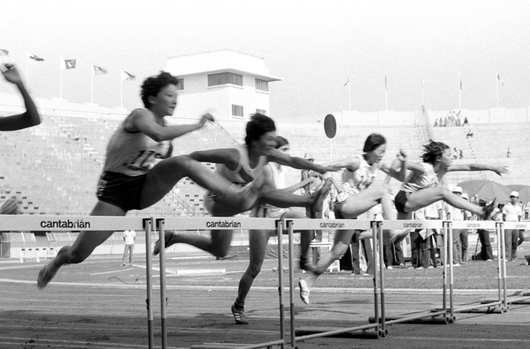 1978年12月19日,在第八届亚运会田径比赛中,中国运动员戴建华(左)夺得百米栏第一名。新华社记者 官天一 摄