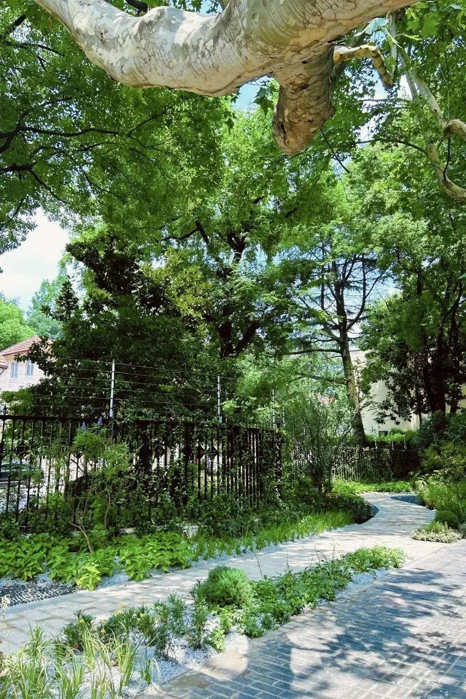 目前,结合复兴路整体风貌特征,黄浦区绿化部门已完成了对上海文史研究馆配套绿化开放的景观改造工作。现场,绿地远远望去,仿佛闹市中的“绿野仙踪”,呈现一片郁郁葱葱的景致。