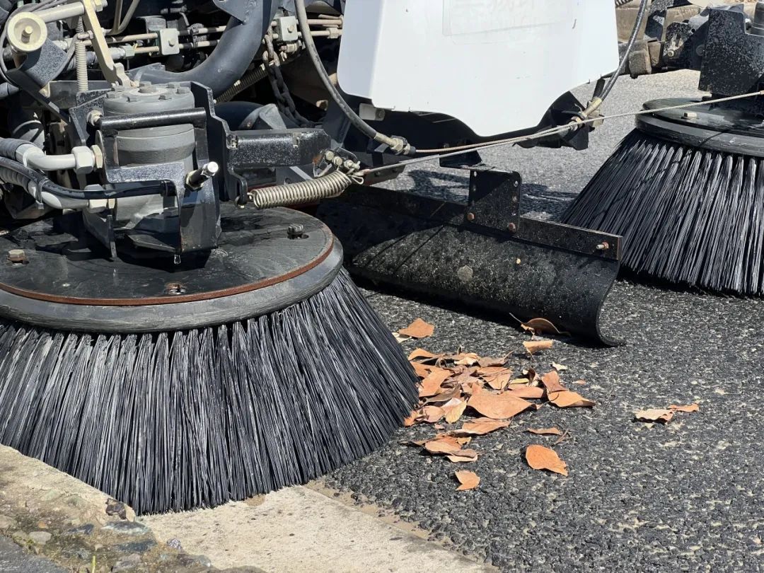 在“小白”向前行进的过程中,道路上的落叶、垃圾被快速收集进“尘桶”。而上街沿区域和花丛的垃圾,则安排了保洁员使用鼓风机将垃圾吹落至车辆扫帚处。在日常保洁阶段,可以实现“一遍吹、一遍扫、一路清”,而通过“人机协同作业”,该路段的环卫工劳动时间大大压缩。