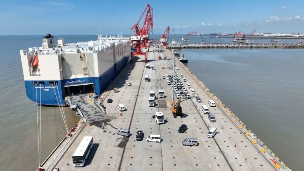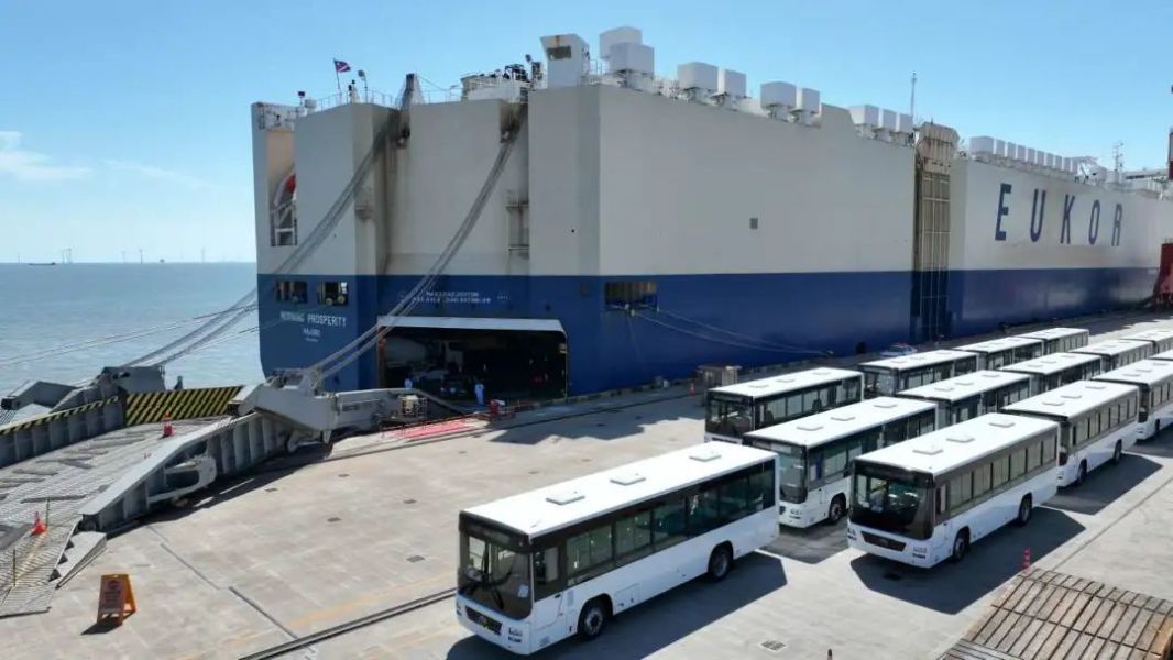 近日,上海南港码头,马绍尔群岛籍“黎明昌盛”轮在办完出境边检手续后,装载着250辆宇通大巴及比亚迪、奇瑞、福特、江淮等10余个品牌、总计1922辆国产汽车,驶向尼加拉瓜科林托港口。多品牌和多类型车型装船使该轮仿佛成为国产汽车展厅,其中宇通大巴更是首次批量从上海南港码头出口。