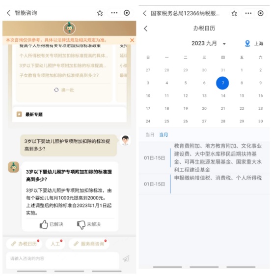 这里不仅有“热点问题”合集,为你提供智能解答,还有人工客服在线答疑!点击智能咨询页面左下角“办税日历”,还能一键查询全年税务办理时间,帮你轻松安排办税时间~