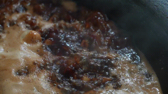 2.泡发后的香菇,连同香菇水一起倒入,并进行煸炒。
