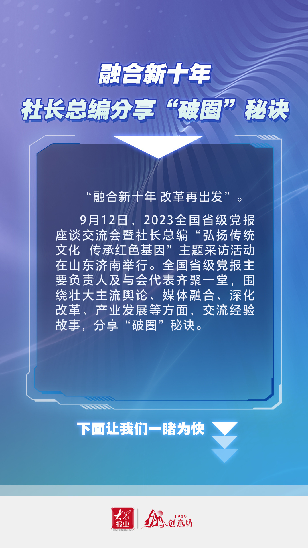 9月12日,2023全国省级党报座谈交流会暨社长总编“弘扬传统文化 传承红色基因”主题采访活动在山东济南举行。全国省级党报主要负责人及与会代表齐聚一堂,围绕壮大主流舆论、媒体融合、深化改革、产业发展等方面,交流经验故事,分享“破圈”秘诀。