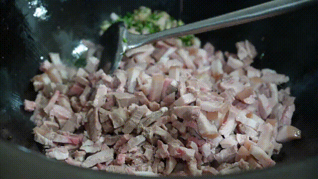 1.锅里热油,倒入葱姜蒜末翻炒,煸香后加入肉丁,炒至肉色变白。