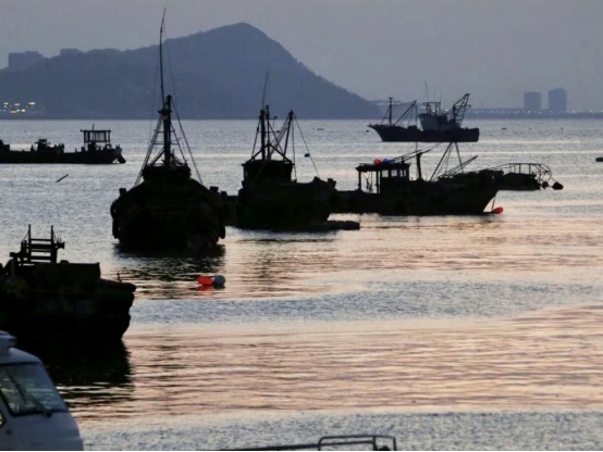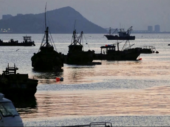 傍晚时分正是西连岛村最美的时刻,落日余晖,霞满天际,海风也带着一丝丝潮气,外出的渔船回到岸边,一切都显得闲适而安然。时而鸣响的汽笛声,声声悠长,将坐在一旁的游客们“拖”进大海的辽阔意境,一天的疲劳在此刻都随着落日沉淀。