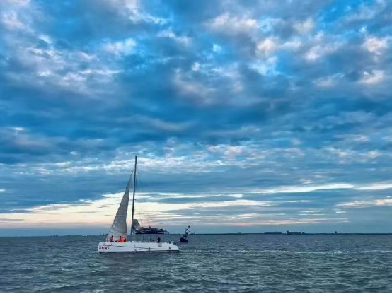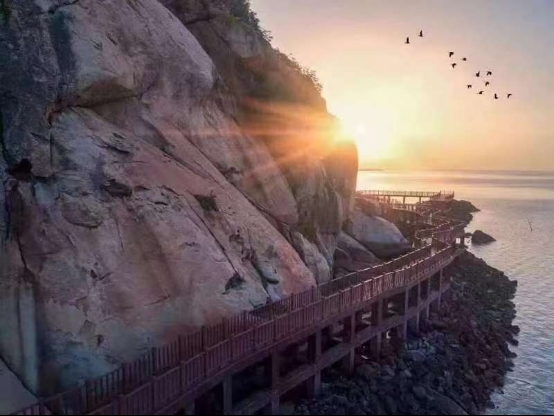 坐在船上,海风轻抚脸庞,带来阵阵凉意。郁郁葱葱的植被从羊山岛的最高点一路向下铺陈,更加凸显岛上的岩基海蚀海岛特色。白色的海鸥在海蚀礁石上飞掠而过,尽显灵动之美。沿岸的亲海栈道如同一条红褐色的长龙将整个羊山岛围拢起来。礁石上,垂钓者收获满满;栈道边,众多游人摆着不同的姿势在拍照。