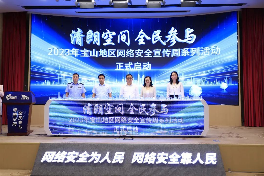 9月12日上午,区委举行“清朗空间 全民参与”2023年宝山地区网络安全宣传周系列活动启动仪式。区委常委、宣传部部长胡宝国出席活动并致辞。市委网信办,区网信委成员单位,区委、区政府各单位部门,各街、镇、园区相关领导,以及区域内部分互联网企业参加活动。