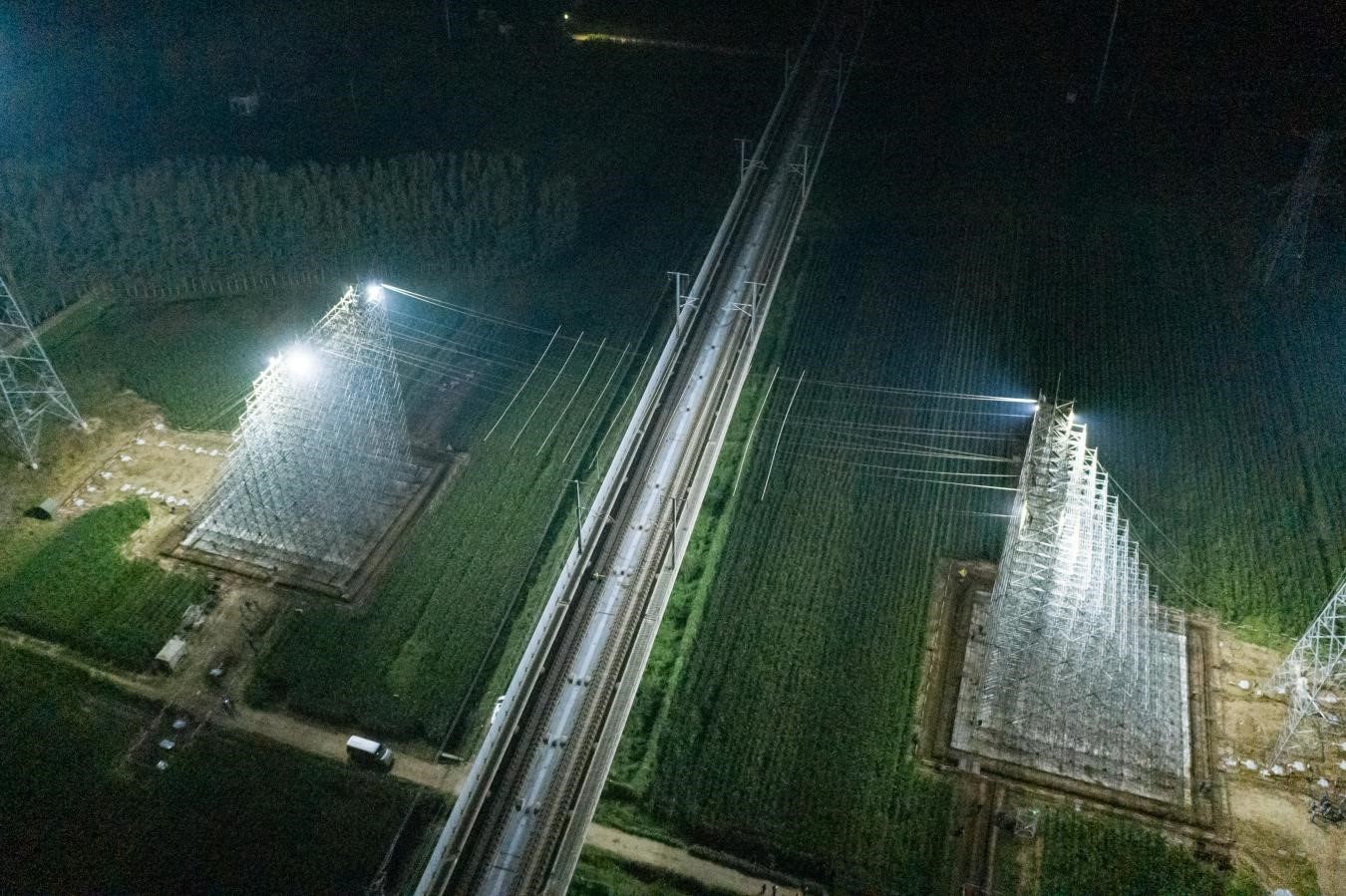 9月11日1时50分,济宁红星 (石门山) 220千伏输变电工程跨越京沪高速铁路现场,随着封网绳成功拆除,为期6天的跨越京沪高铁架线施工圆满完成。