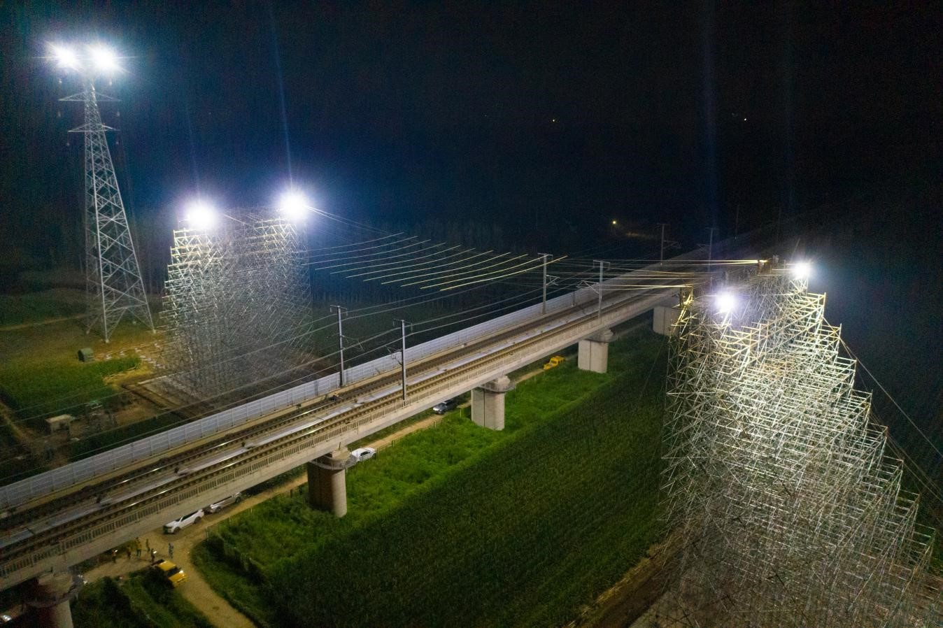 “本次跨越涉及二级风险作业,施工路径复杂,跨越铁路窗口期短,加上凌晨施工局限性多,因此施工难度很大,作业风险系数远超同类放线施工。”项目负责人钱雪雷介绍说。