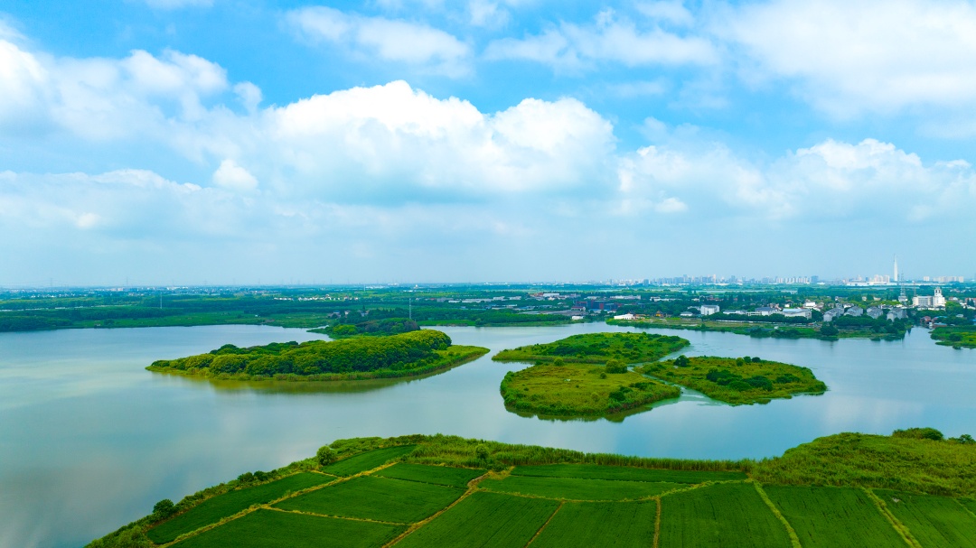 充分利用金泽地区的淀泖湖群资源和独具韵味的江南桥乡文化,“串湖港荡漾七珠为一链”,蓝色珠链由“七湖一河”组成,与太浦河、拦路港两条大河相连通,水面积约8平方公里,水面率高达25%,水质达到Ⅱ类水标准。