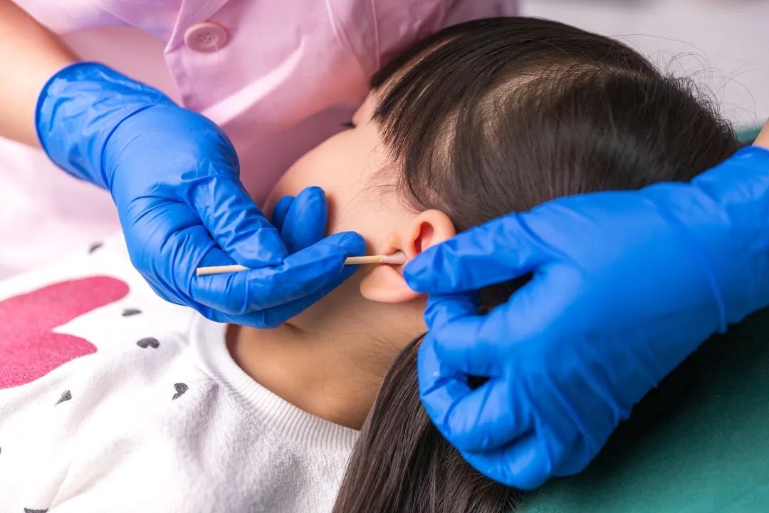 方法三:用另一侧手略过头部,将耳廓向后上牵拉,拿棉签轻轻地进入外耳道壁,此时的外耳道宽敞并且平直,不容易损伤外耳道,棉签也更容易擦到痒的地方。