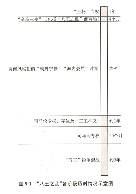 “八王之乱”给人留下西晋政局长期混乱的印象,这却是一个“人为连贯起来的故事”:一般认为“八王之乱”总共历时十六年,但如上图所示,其实当中存在长达九年的“朝野宁静”“海内晏然”时期。