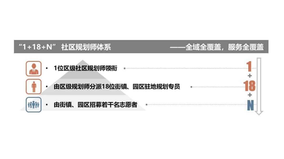 与此同时,为更好的展现生活圈工作的可持续性,为街镇提供更全面的专业服务,生活圈联席会议办公室已初步形成松江区社区规划师制度,建立“1+18+N”社区规划师体系,主要由区级社区规划师领衔,并由区级社区规划师向18个街镇、园区分派驻地规划专员与街镇、园区招募的若干名志愿者共同参与的社区规划师团队。确保生活圈蓝图的科学性和系统性,生活圈项目的可实施和高标准,从而性进一步提升城市高品质设计和精细化治理能力。