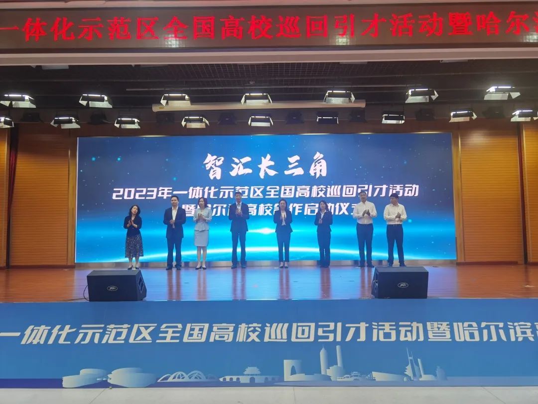 为打响长三角一体化示范区人才品牌,推动长三角区域人才交流和校企合作,精准挖掘全国高校人才资源,今天(9月13日)上午,在长三角生态绿色一体化发展示范区执委会指导下,上海青浦、江苏吴江、浙江嘉善三地人社部门与示范区近百家龙头、上市、重点企业共赴黑龙江省哈尔滨市,在黑龙江大学举办“智汇长三角”2023年一体化示范区全国高校巡回引才活动暨哈尔滨高校合作启动仪式,为广大企业与高校学子搭建双向交流的平台,共同奔赴一场“人才盛会”。