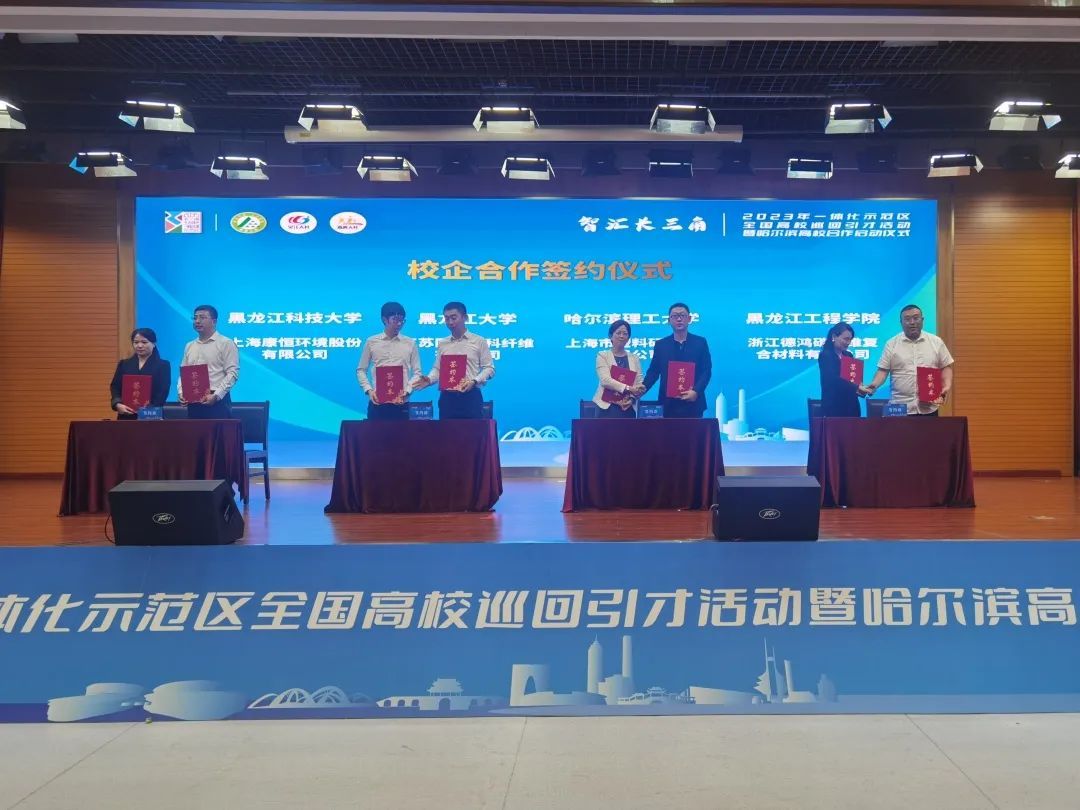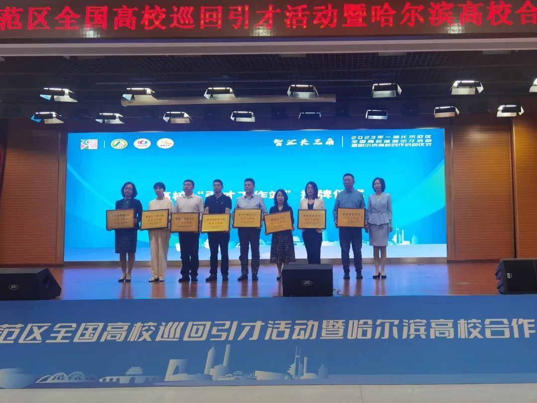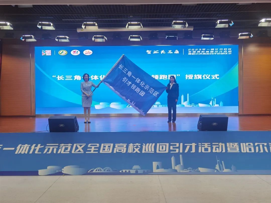 启动仪式上,长三角生态绿色一体化发展示范区执委会向青浦区授予“长三角一体化示范区引才领跑团”旗帜,青浦、吴江、嘉善向20所高校授予“引才合作单位”牌匾,三地优质企业与哈尔滨高校签订就业合作意向,吹响了长三角一体化发展示范区在哈尔滨引才征途的号角。