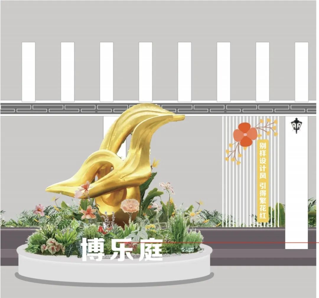 对小区南大门公共区域进行了装饰改造,打造“一路、两手、一心”社区风景线。
