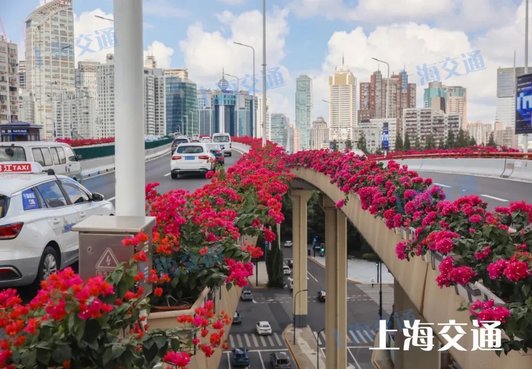 据市道运中心介绍,三角梅的盛放期会持续到11月,养护单位将在高架夜间封道时段对三角梅进行修剪控高、施肥控花、及时预防病虫害,确保国庆和进博会期间申城高架繁花似锦,迎接八方来客。