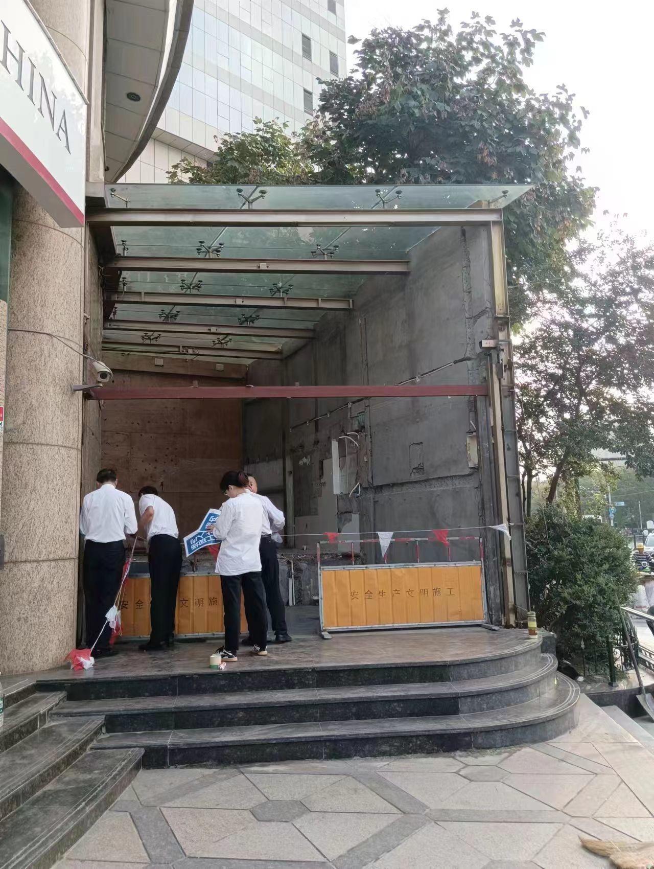 9月7日上午9时,随着拆违工人的一锤敲墙声,位于中心城区金陵中路某大厦拖了数年之久的违法搭建的建筑物终于进入拆违实施阶段。
