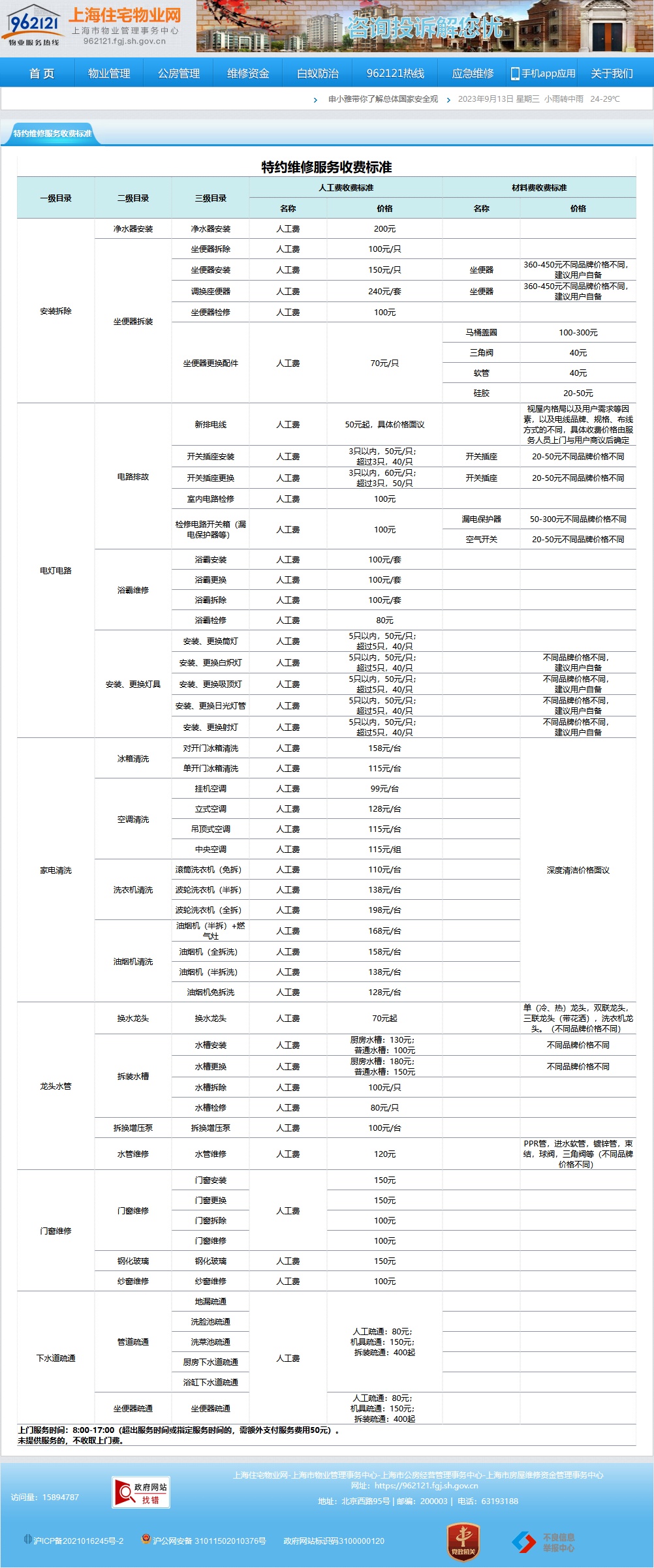 “962121”是上海物业服务热线,在2009年设立之初,主要受理居民家中断水断电和共用部位的维修需求。升级后,“962121”增设特约维修服务,可提供居民家里自用部位的下水道疏通、水电维修、家电清洗、门窗维修、安装拆除等服务。