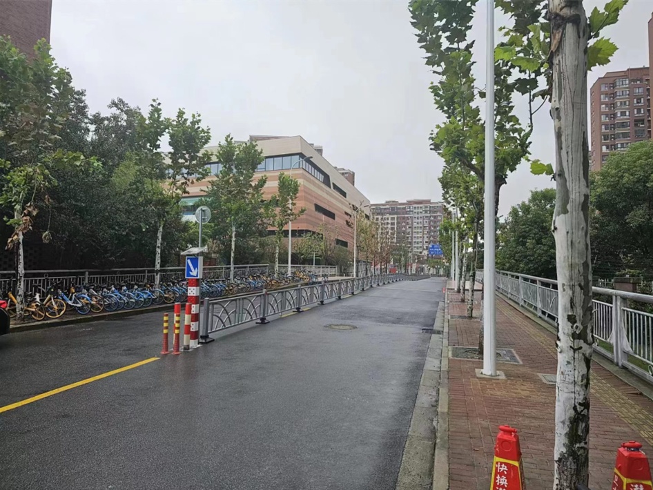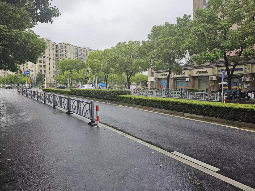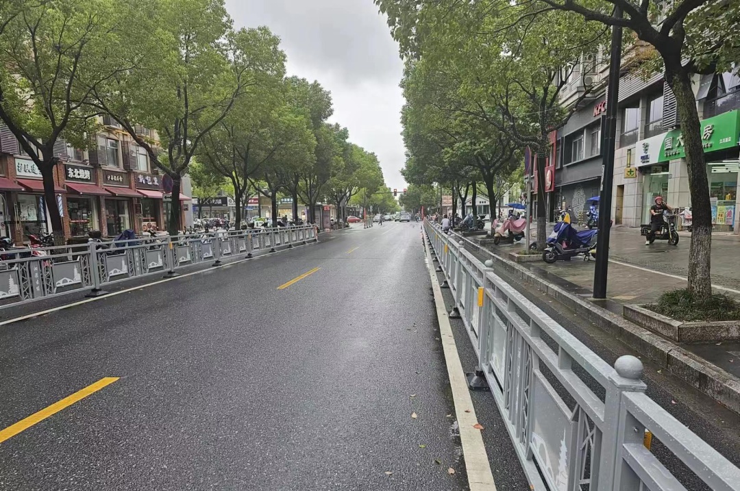 江川路(鼓浪路-人民路)两侧商铺较多,时常有部分司机贪图便利,将车辆停放在道路两侧,占据非机动车道。为解决群众的出行困扰,泗泾镇在加装违停抓拍设备后,加装了机非隔离栏。
