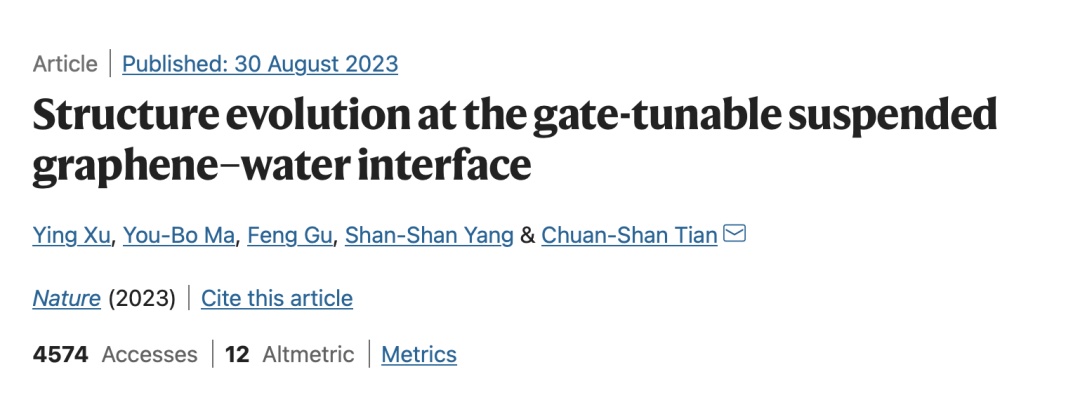 近日,物理学系田传山课题组在电化学界面的原位表征上取得进展。相关成果以“Structure evolution at the gate-tunable suspended graphene-water interface”为题,于2023年8月30日发表在Nature杂志上。