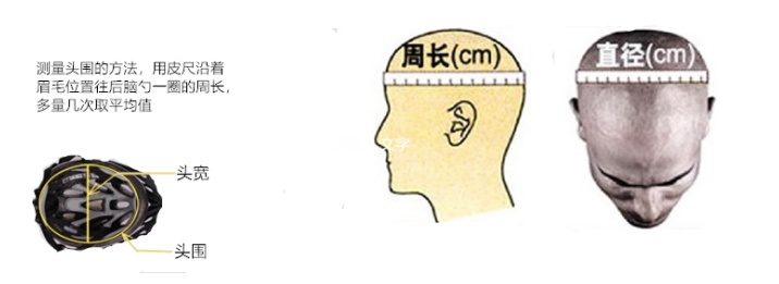 第一步:测量头围,选择合适尺寸的头盔。拿一根软尺平行绕太阳穴至额头至脑一周(通过量眉毛以上,脑袋最宽的地方),所得出的数据即为头围。新的头盔通常都有点紧,夹脸夹腮是很正常的,如果太阳穴和头顶感受到明显的压迫那头盔就偏小了,头盔是最重要的安全设备,必须要选合适的尺寸。