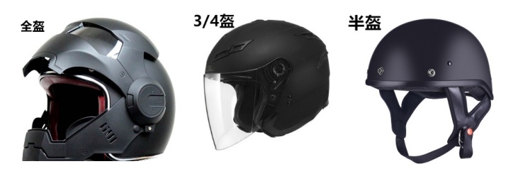 3/4盔:通过坚硬的外壳和强韧的内村提供标准的保护,下巴处没有防护