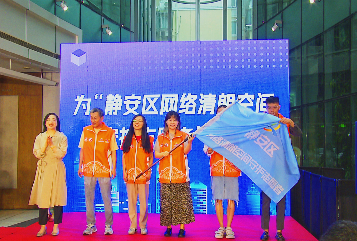 本次网络安全进楼宇主题活动还结合了“清朗浦江·优化营商网络环境 保护企业合法权益”专项行动宣传内容。活动中,“静安区网络举报宣传月”正式启动,“静安区网络清朗空间守护志愿者”队伍被授予队旗。这支队伍将在涉企网络侵权举报方面发挥重要作用,全力维护区域良好的营商网络环境。“静安区网络清朗空间守护志愿者”代表宣读了倡议书。市互联网新闻研究中心(市互联网违法和不良信息举报中心)相关负责人进行了“涉企网络侵权举报”相关政策的宣讲。