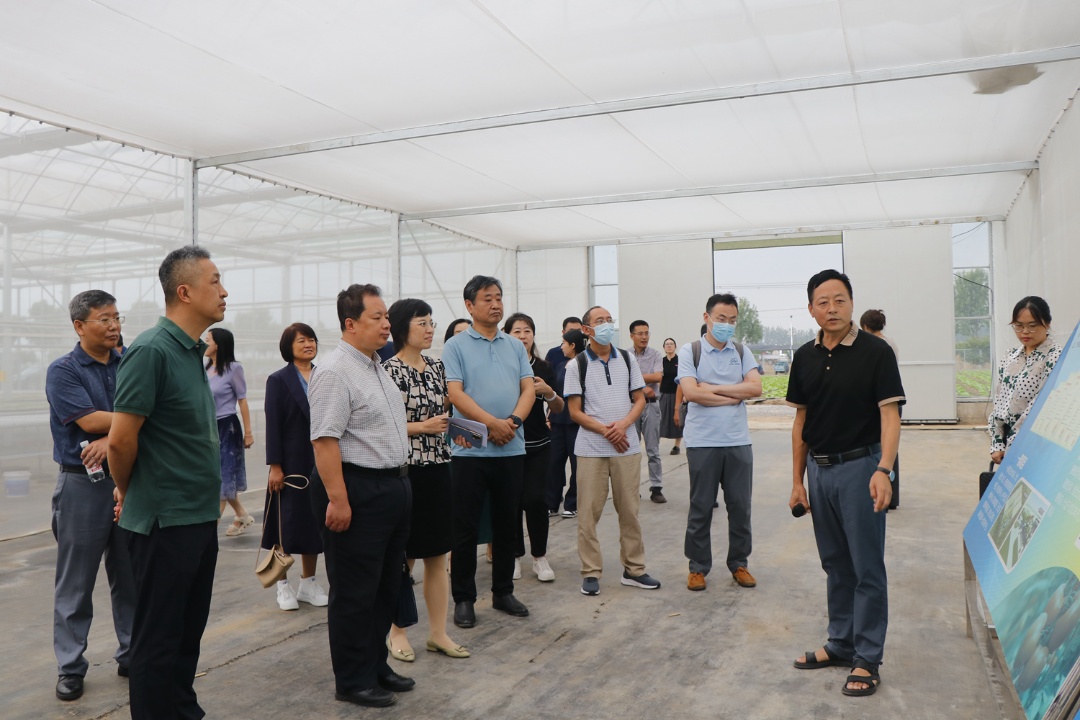 在青岛德龙种子有限公司,调研组实地察看,现场听取项目负责人情况汇报,针对西红柿育苗技术进行指导,并从土壤、肥料等方面提出专业指导意见。