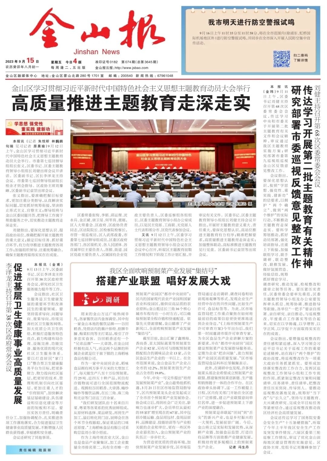 高质量推进主题教育走深走实……这期《金山报》你看了吗?