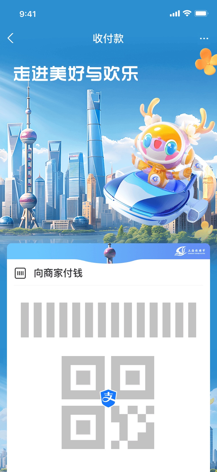 上海旅游节联合支付宝,结合上海的特色,设计了一套城市形象图,并将其应用到支付宝app的付款码皮肤、乘车码皮肤、支付宝红包封面上。9月16日起,全国网友可打开支付宝搜索“支付宝旅游官方”生活号,点击“付款皮肤”“出行皮肤”“红包皮肤”,进行领取。支付宝“乘车码、付款码、红包封面是广大用户最常使用的日常功能,我们希望借助这个方式,将上海风情推介给更多用户,让大家都能喜欢上上海。”