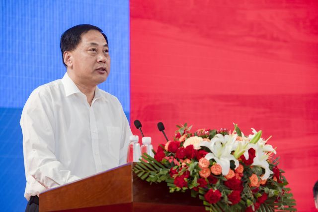 中建五局副总经理卢洪波代表建设运营方致辞,他表示,经过840多天的建设历程,一片平地从塔吊林立到建设成为一座功能齐全、设施先进、环境优美的现代化大学科教园区,如期交出一份优质履约的金牌答卷,凝聚着广大建设者们的辛勤汗水和坚定决心。未来,中建五局将一如既往支持烟台大学的发展,继续以百分之百的努力做好校区运营工作,为广大师生提供舒适、安全的学习、生活、工作环境。