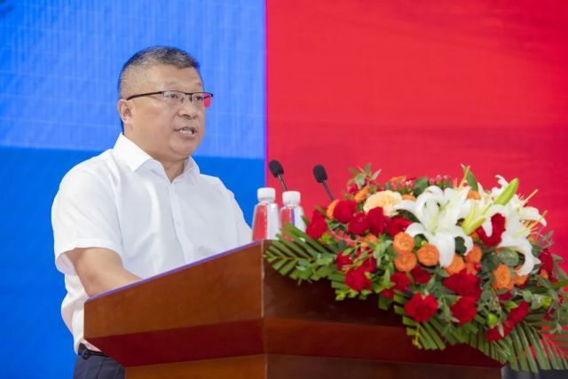 烟台大学党委书记张殿臣在致辞中代表学校向各位来宾表示诚挚欢迎,向2023级新生表示热烈祝贺,向为八角湾校区建设、运营付出辛勤汗水的管理者、建设者致以衷心感谢。