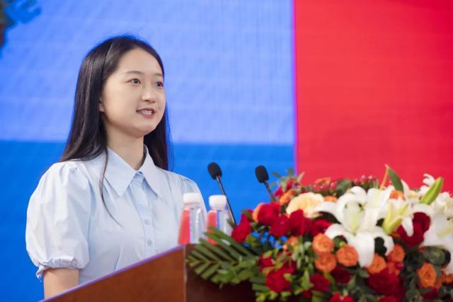 在校研究生代表、海洋学院陈冠宇表示将担当敢为、主动愿为、乘势作为,实践青春无悔的诺言。本科生新生代表、外国语学院高玉洁表示,将秉持烟大精神,乘风破浪,书写精彩篇章。