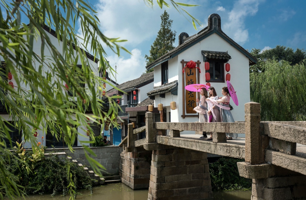 廊下镇山塘村位于金山区西南片区,地处廊下郊野公园和金山现代农业园区核心区,作为上海市第二批乡村振兴示范村中唯一跨省的“区域联动型”示范村,近年来,山塘村积极打造跨省旅游景区“明月山塘”。 景区内,白墙黛瓦的建筑风格,跨省百年山塘桥等,都保留着原汁原味的江南水乡风貌。 市民 杨女士 我几乎每个星期都来一下,兜一兜,因为也离得比较近。特别是那种白墙黛瓦,能勾起我小时候的很多回忆。 依托独特的地理位置以及丰富的农业资源,山塘村大力发展农旅融合产业,通过自行建设、引导村民、招商经营主体等多种模式,发展乡村旅游和文化创意产业。 截至目前,山塘村共有持证民宿12家,建有休闲农场、合作社等17家,并利用区位优势,建设了沪浙毗邻儿童中心、提供民俗文化体验的琮璞文化苑、青檐版画艺术中心等。明月山塘跨省景区已成功创建国家4A级旅游景区,2022年景区累计接待游客约76万人次,旅游经营总收入达到3346万元。此外,山塘村特色菌菇产业发展势头良好,预计今年可年产1.5万吨食用菌鲜品,年销售额预计达到1.2亿元。