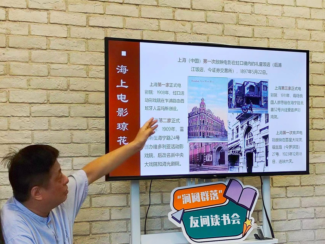 孙孟晋此次走进社区,向居民们分享了《上海摩登》这本书的精彩章节和自己读书后的感受。他说,他最喜欢书中关于上海电影发展史的这一部分阐述。居民们纷纷表示,通过这次小型讲座,获取了不少新知识:“没想到,上海第一座电影院就在我们虹口区的乍浦路,当时叫虹口活动影戏院。”